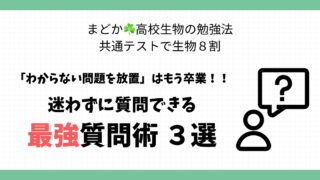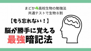 どうも!まどかです!!いきなりですが質問です。みなさん暗記事項ってどんなふうに覚えていますか?生物は暗記が大前提の教科。だけど実際にはなかなか覚えられないものですよね…覚えたはずなのにすぐ忘れてしまうからまた覚え直し…本当は1発で覚えて覚え...